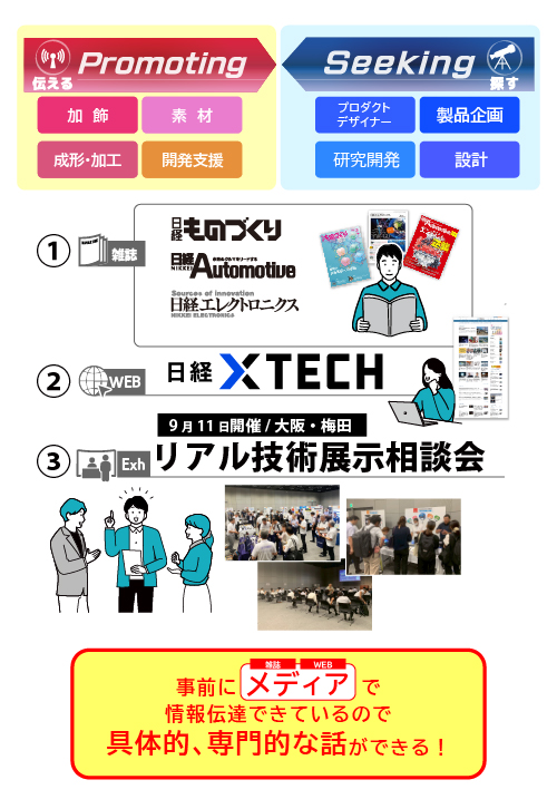 付加価値を高める製品開発のヒントとなる異種×異能のものづくり技術の今を“しっかり伝えて、じっくり探せる”展示相談フォーラムです。